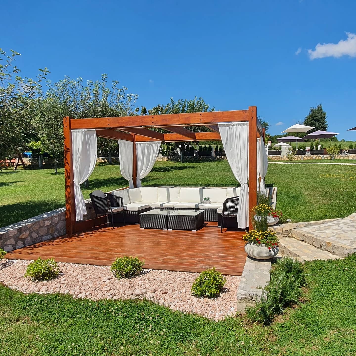 Opustite se sa stilom i luksuzom uz luksuzne baldahin. Naši najsuvremeniji dizajni učinit će da se vaši gosti osjećaju kao da su na privatnom otoku dok se opuštaju na suncu. Uz izdržljive materijale i elegantan dizajn, možete biti sigurni da će vaši gosti imati ugodno iskustvo bez stresa. Istaknite svoj vanjski prostor i dodajte dašak sofisticiranosti s našim baldahinima.