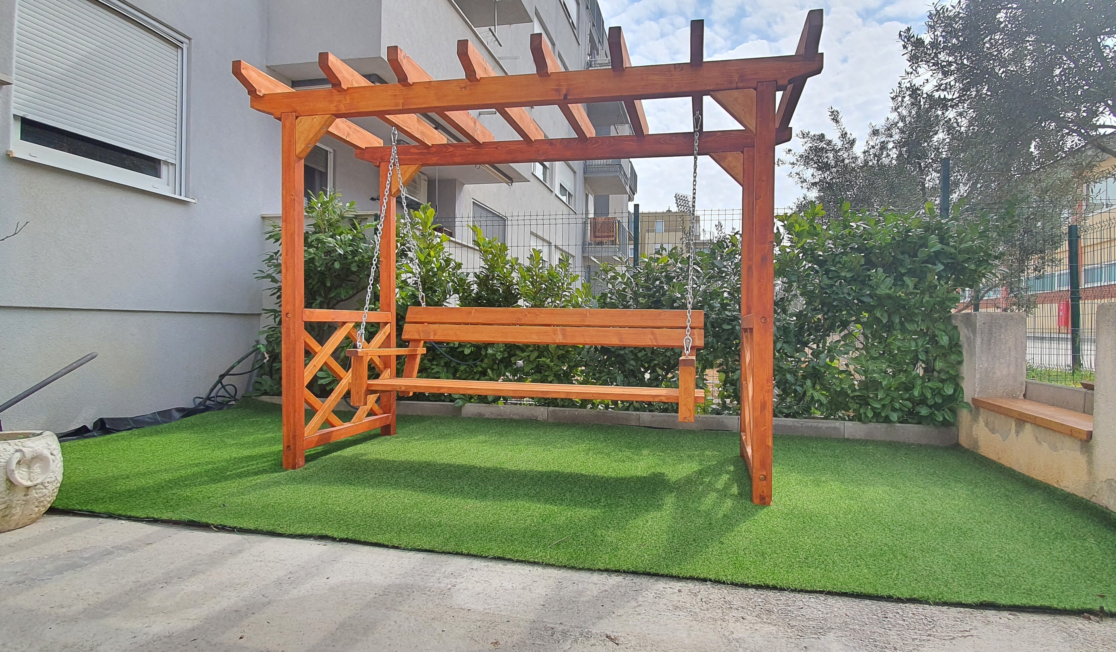 Otkrijte savršenu ravnotežu između udobnosti i stila uz drvene ljuljačke! Naše su ljuljačke izrađene od visokokvalitetnog drva, nudeći izdržljivost i klasičan izgled koji će trajati godinama. Bilo da tražite privatni bijeg u dvorištu ili želite dodati jedinstvenu notu svom poslu, savršen su dodatak. Uživajte u opuštanju i poboljšanom ambijentu uz naše prekrasne i čvrste ljuljačke!